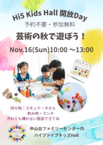 初回のイベント紹介は11月のホール開放デーのご案内。